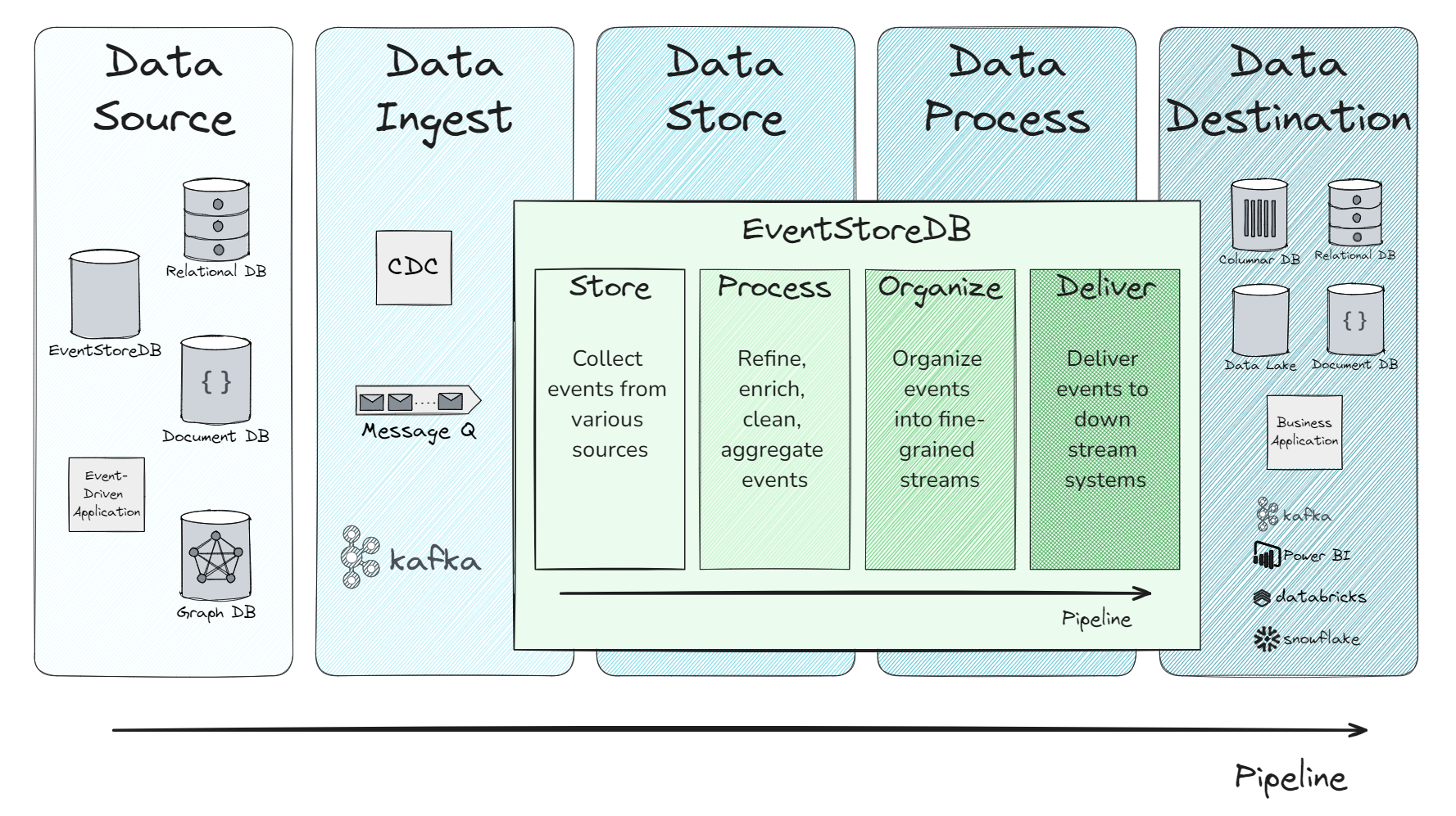 EventStoreDB primarily participates in the following data pipeline processes: