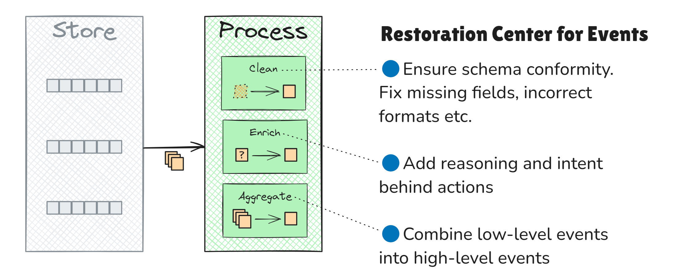 - Process, refine, enrich, clean, and aggregate events