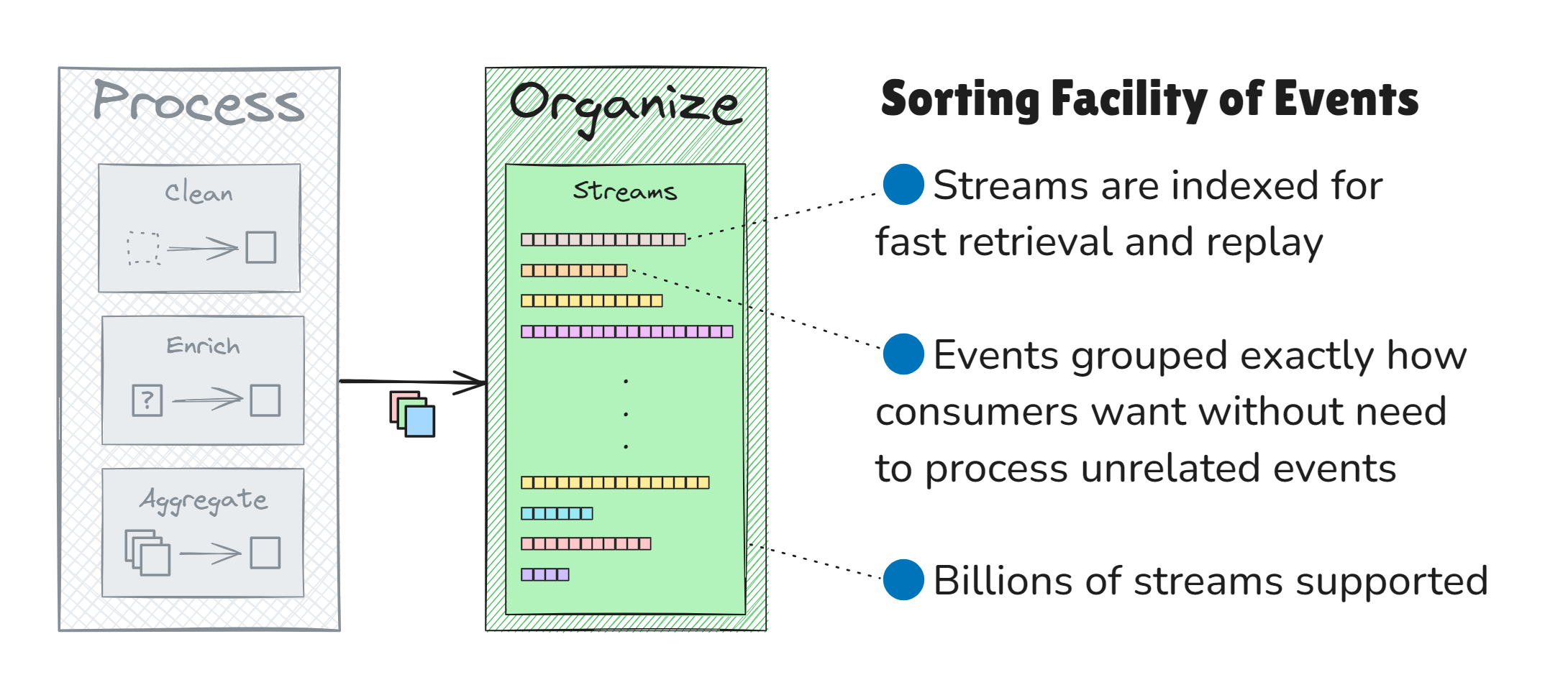 - Organize events into fine-grained event streams